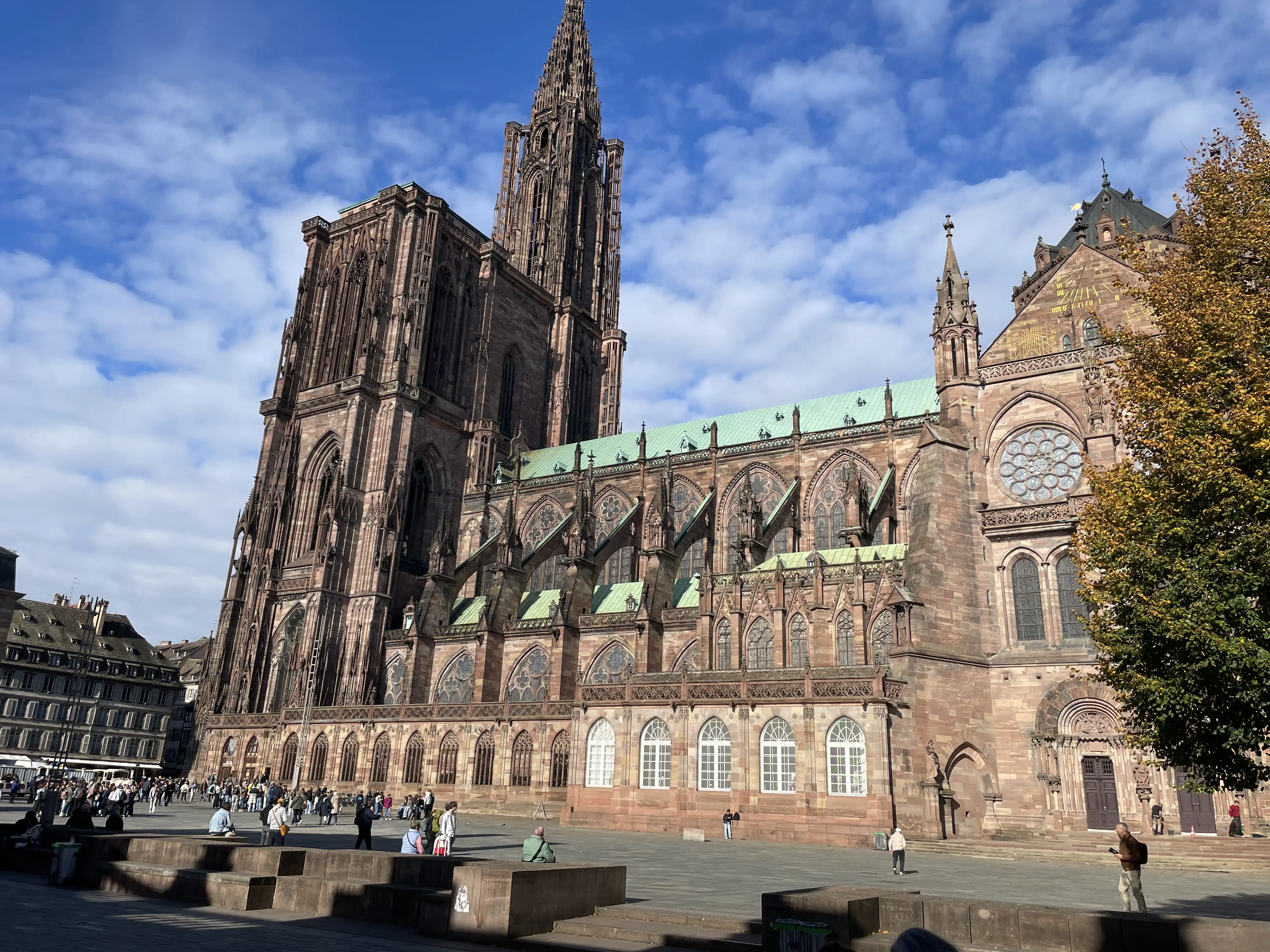 Basel’den sonra gittiğimiz bu Fransız şehri beklediğimden çok güzeldi. Market, restoran, kahve fiyatları İsviçre’den sonra biraz rahatlattı bizi. Kruvasan'ın memleketine geldik diye iyi bir kahve-kruvasan yeri aradım ama açıkçası yorumlara bakarak çok da başarılı bir yer bulamadım. Baktıklarım arasında iyisi diye gittiğim yer de beni çok etkilemedi. Yine de şehirde yürüyüş yapmak, kanalların kenarında oturmak çok keyifliydi. Basel'den Strazburg'a giderken de dönerken de polis kontrolü vardı. Pasaport ve vize kontrolü yapıyorlar. Schengen bölgesindeyiz ama sınır kontrolleri olabiliyor.